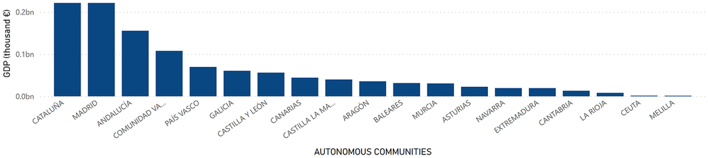 All the results obtained in this study are available through dashboards with the Power Bi application. These dashboards are interactive, and they contain two sections. The first deals with the GDP in Spain, in the different Autonomous Communities and provinces. The second shows graphs of the centennial and non-centennial Spanish population, rurality and sex. Filters can be applied to select a specific Autonomous Community or province.
