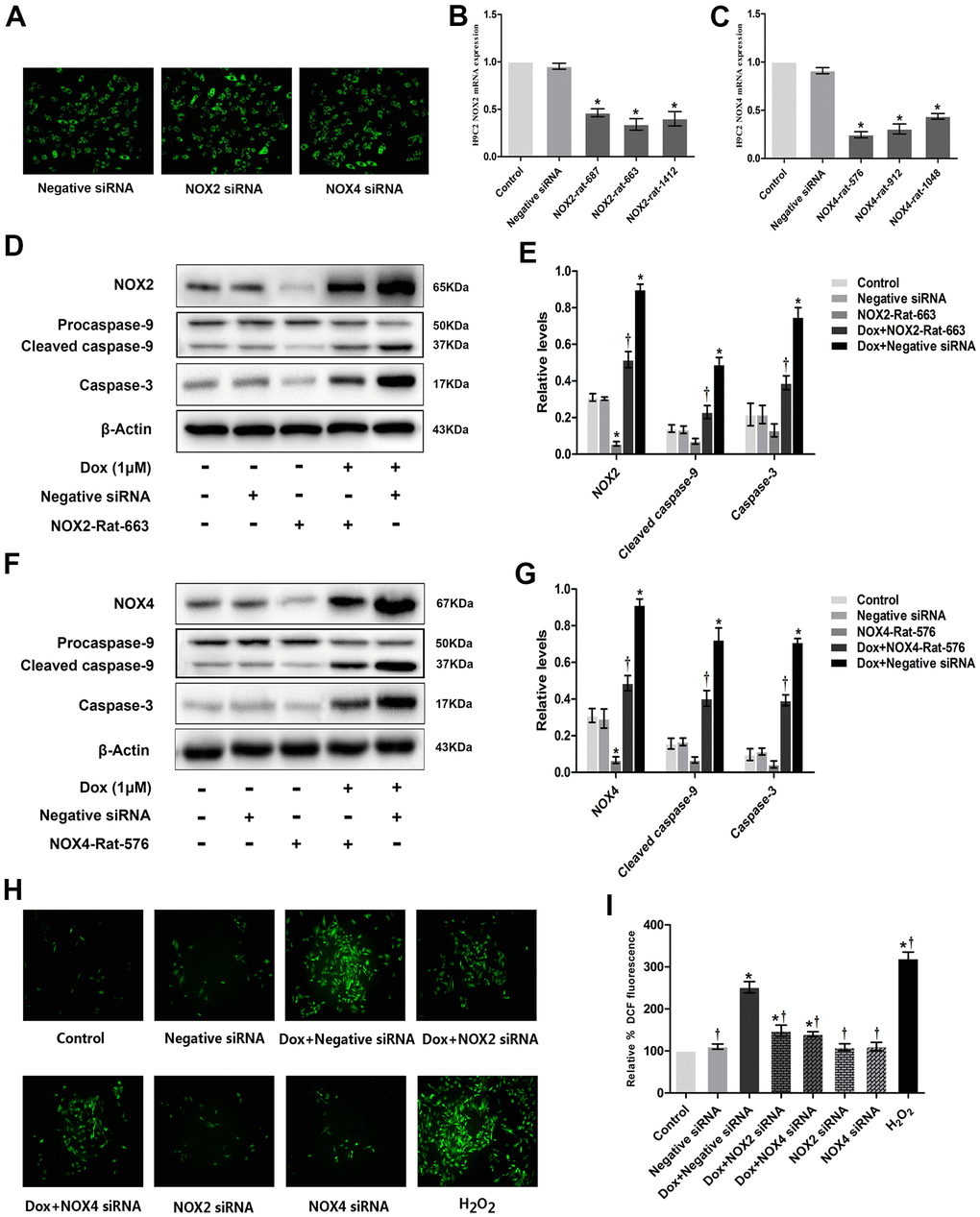 Knockdown of NOX2 and NOX4 reduced ROS generation, caspase-3, and cleaved caspase-9 expression in DOX-treated H9c2 cells