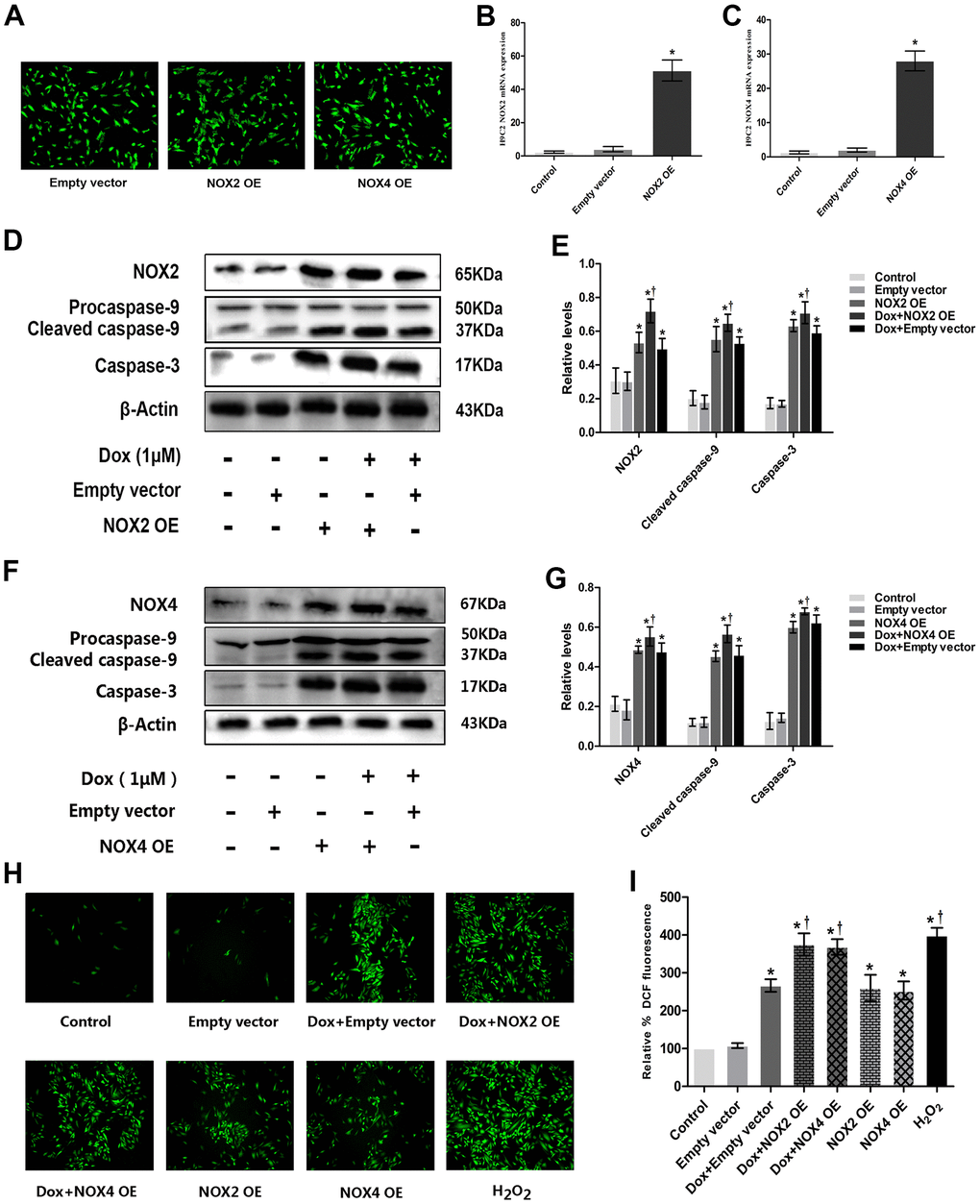 Overexpression of NOX2 and NOX4 enhanced ROS generation, caspase-3, and cleaved caspase-9 expressions in DOX-treated H9c2 cells