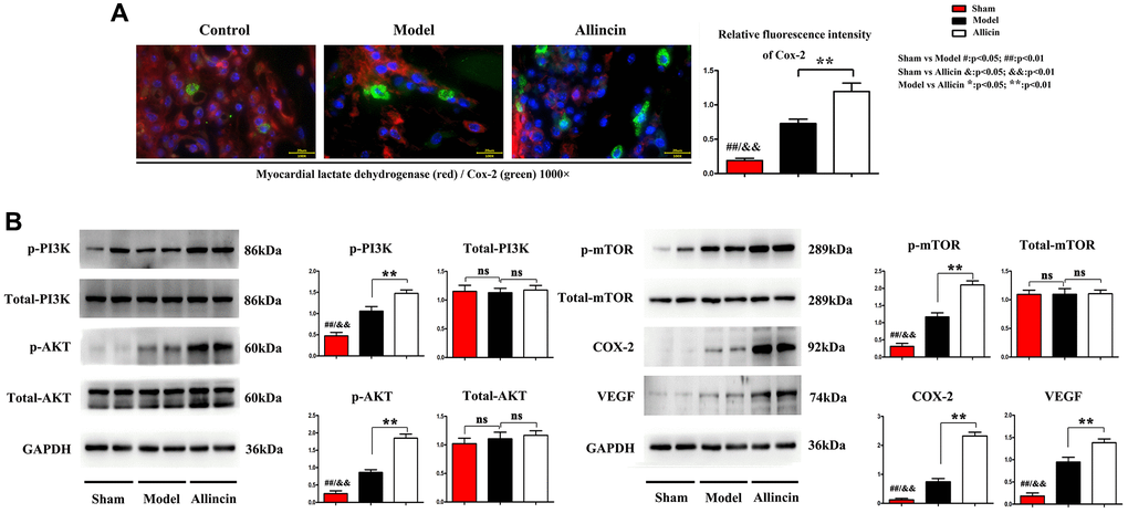 Allicin increased Cox-2, VEGF, myocardial LDH, and activated PI3K/AKT/mTOR pathway