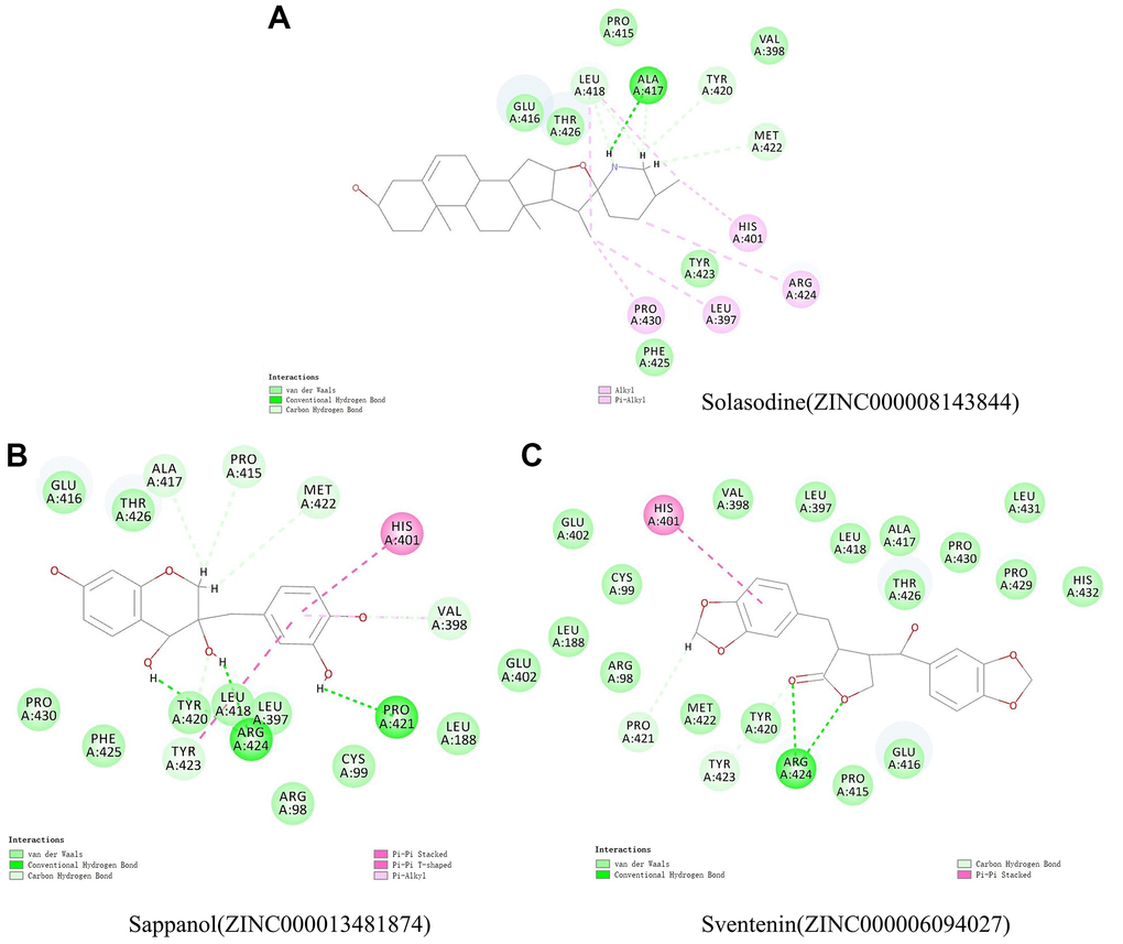 | Solasodine | Molecule:C1 | LEU397 | 5.35 | |