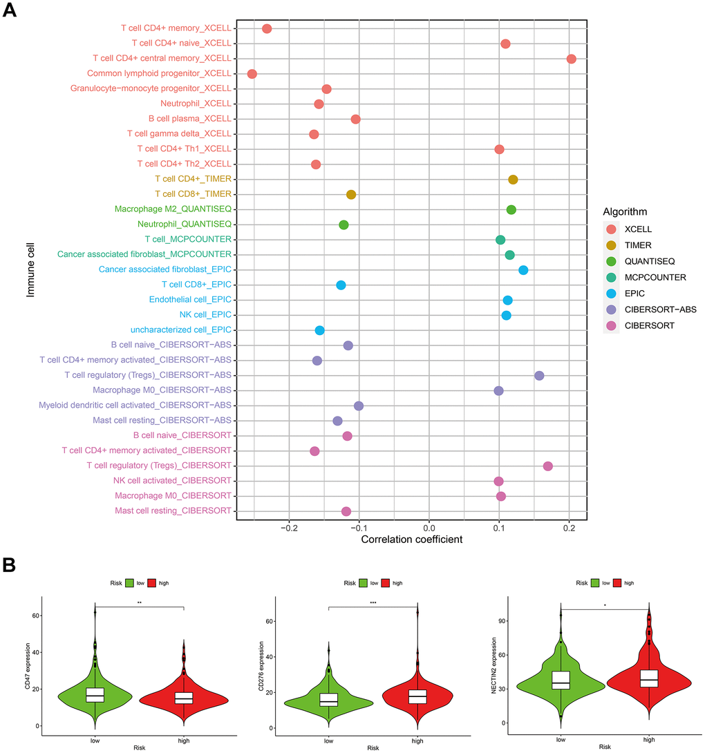 The immune microenvironment plays an important role in tumorigenesis. Infiltrating immune cells may act as tumor-antagonizing or tumor-promoting factors [49, 50]. Cancer cells eventually gain the ability to inhibit the tumor-antagonizing functions of immune cells and escape immunological surveillance, resulting in cancer development [51]. In recent years, immunotherapy targeting immune microenvironment regulation and immune checkpoint modulation has shown promising efficacy in cancer treatment [52, 53]. In addition, iron and immunity are closely linked [54]. Many of the genes and proteins involved in iron homoeostasis play a vital role in controlling iron fluxes. Cells of the innate immune system, monocytes, macrophages, microglia and lymphocytes, are able to combat bacterial insults by carefully controlling their iron fluxes, which are mediated by hepcidin and ferroportin. The cell involved in iron overload with the greatest effect on immunity is the macrophage. Intriguing evidence indicated that parenchymal iron overload is linked to genes classically associated with the immune system [55]. In the present study, we investigated the correlation between the risk score model and immune-related factors. The results showed that the low-risk group was related to more tumor-infiltrating immune cells such as CD8+ T cells, CD4+ T cells, B cells, and neutrophils, whereas the high-risk group was related to more tumor-infiltrating immune cells such as NK cells, macrophages, and Tregs. Moreover, our analyses showed that the high-risk group had significantly decreased expression of CD47 and markedly upregulated expression of CD276 and NECTIN2. Studies have shown that CD47 plays a key role in immune regulation and tumor development. Overexpression of CD47 could protect tumor cells from phagocytosis and is a promising therapeutic target in cancer therapy [56, 57]. CD276, also known as B7-H3, is an important immune checkpoint member of the B7 and CD28 families. CD276 was found to be overexpressed in various tumor cells, which acts as an inhibitor of T cell function and indicates poor prognosis in cancer patients [58, 59]. Studies have shown that NECTIN2 is an adhesion molecule that participates in tumor growth, metastasis, and tumor angiogenesis [60]. There were significant differences in tumor-infiltrating immune cells and ICGs between the high-risk and low-risk groups in our prognostic signature, which may serve as potential molecular markers for predicting the efficacy of immunotherapy.