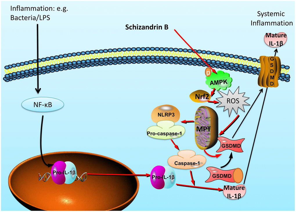 In summary, our findings for first time indicated that Schisandrin B reduces the epithelial cells injury of colitis through regulating pyroptosis by AMPK/Nrf2/NLRP3 inflammasome (Figure 9). Our study also provides evidence that Schisandrin B may be of significant therapeutic approach in the treatment of acute colitis.