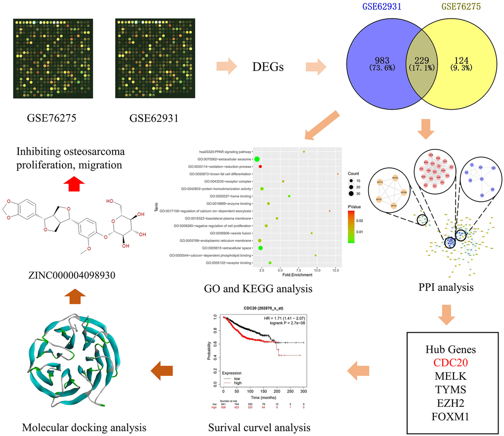 - 17. Wu B, Yang W, Fu Z, Xie H, Guo Z, Liu D, Ge J, Zhong S, Liu L, Liu J, Zhu D. Selected using bioinformatics and molecular docking analyses, PHA-793887 is effective against osteosarcoma. Aging (Albany NY). 2021; 13:16425–44. https://doi.org/10.18632/aging.203165 [PubMed]