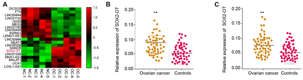 The expression of SOX2-OT is enhanced in the plasma exosome of ovarian cancer patients
