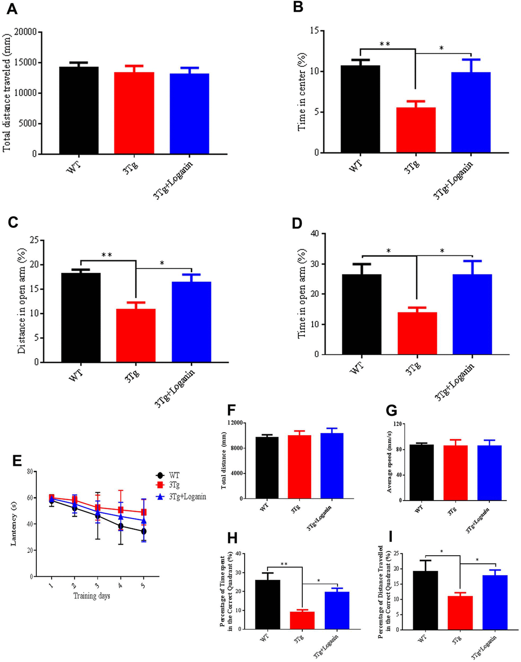 Loganin alleviated anxiety behavior and prevented cognitive impairment of 3xTg-AD mice