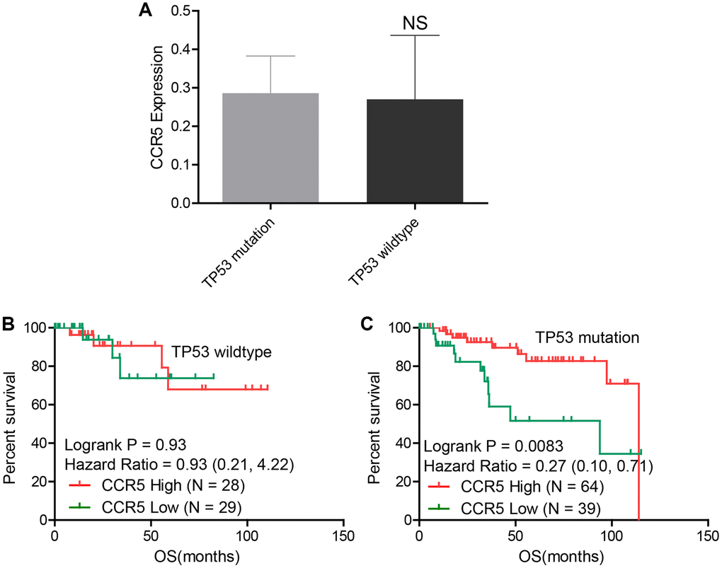 Prognostic value of CCR5 in TP53 wildtype/mutation TNBC patients