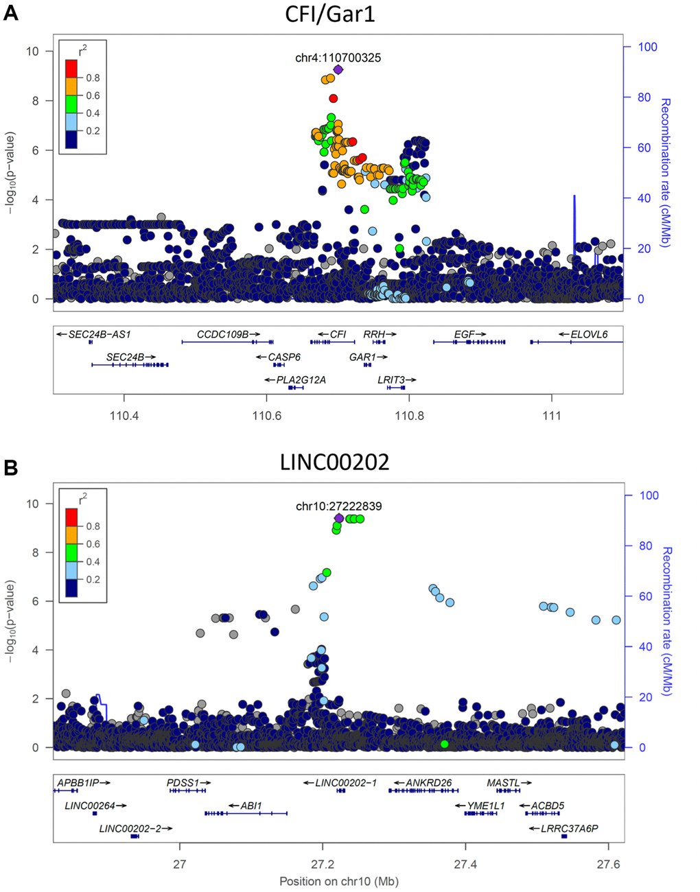 The heritability of PAR (~30%) implies a significant genetic contribution to an individual’s aging rate. Genome-wide association studies identified the CFI/GAR1 and LINC00202 loci to be significantly associated with the physiological aging rate. Both loci have also been previously associated with aging and age-related disease.