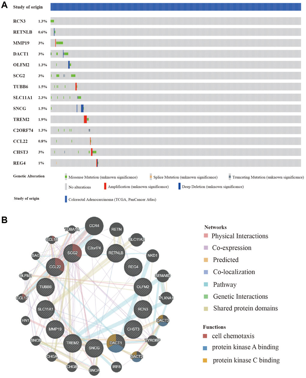 The related public mutation and copy number alteration data were surveyed and analyzed in online webserver cBioPortal (https://www.cbioportal.org/) [20]. All analysis and plot were followed as the webpage UI guide. Network of gene interactions was obtained from GeneMANIA (https://genemania.org).