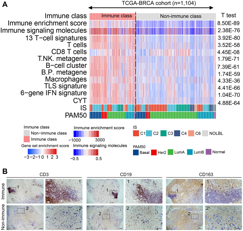 Computational algorithms have been applied for the dissection of transcriptomic sequencing data for cancer subtyping. Non-negative matrix factorization (NMF) is an analysis method that could aid in virtually micro dissecting the molecular characteristics from bulk gene expression profile data. NMF is considered versatile in characterizing various immune landscapes in hepatocellular carcinoma and small-cell lung cancer [15, 16]. In this study, we used NMF to dissect the gene expression profiles in breast cancer. We established a novel immune-related classification system of breast cancer that could guide the selection of candidate patients for immunotherapy.