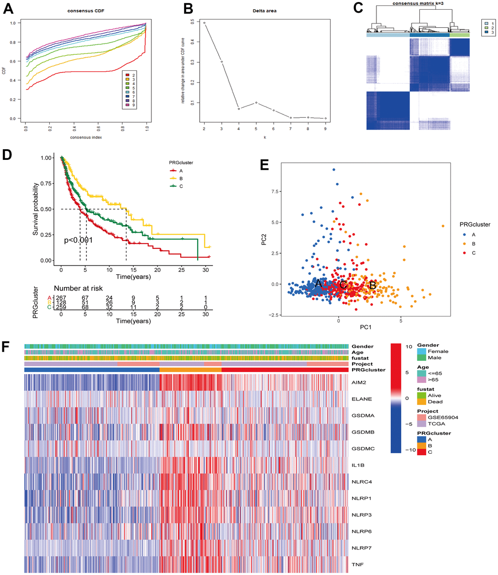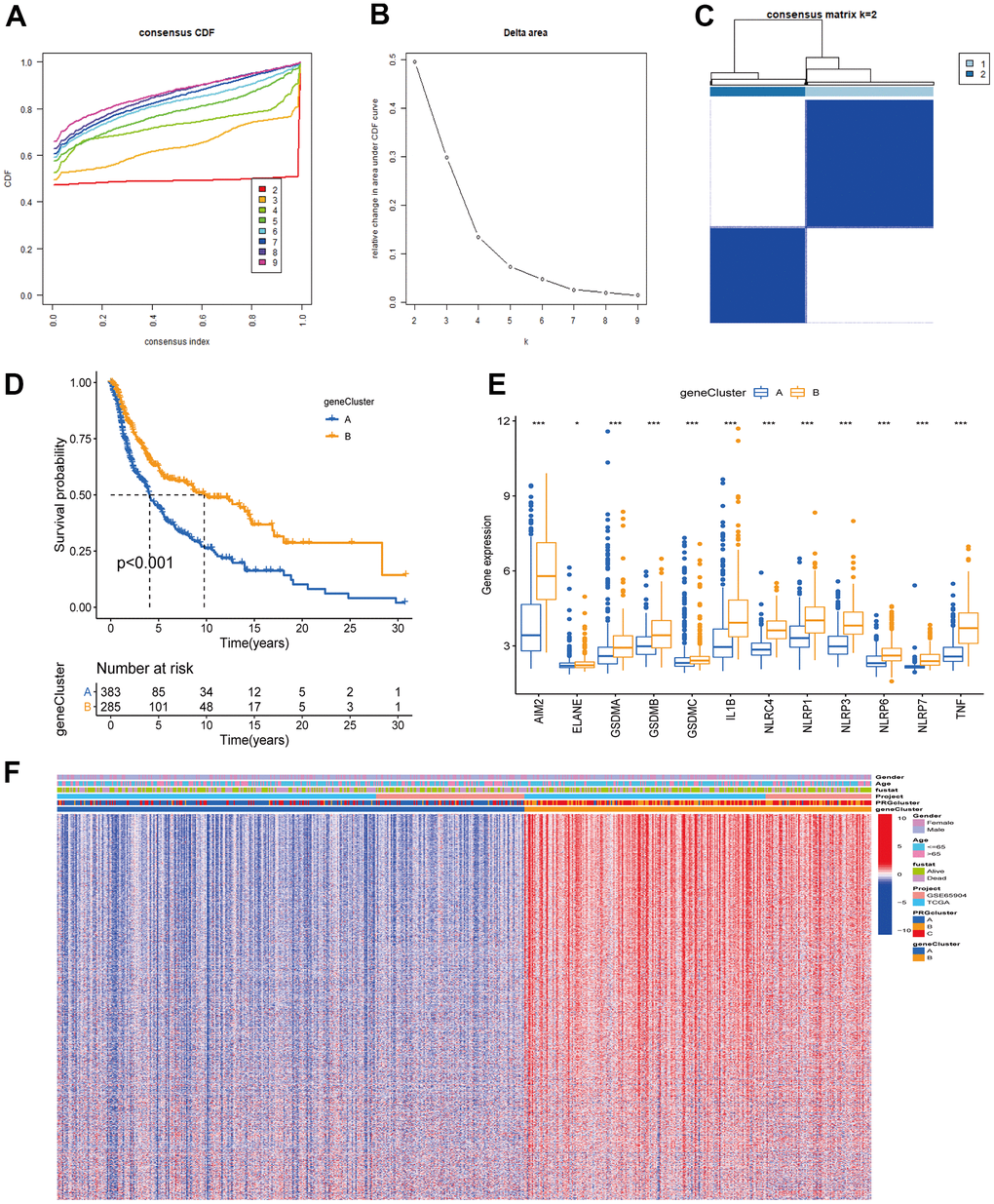 Increasing evidence shows that pyroptosis can induce tumor cells programmed death to inhibit cancer, and can also form a suitable TME around cancer to promote its growth. Regarding anti-cancer effects, pyroptosis has emerged as a potential tumor treatment strategy to improve advanced cancer patient’s clinical outcomes and prognoses [31, 32]. Since most studies on tumors are related to a single cell or a single regulatory factor, the overall TME infiltration and immunotherapy characteristics, under multiple pyroptosis regulation modes, are not completely understood. Comprehending the overall tumor biological characteristics and the immune cell infiltration level, under different pyroptosis regulation modes, would promote our immunotherapy efficacy understanding, and more effectively guide the clinical treatment plan selection.