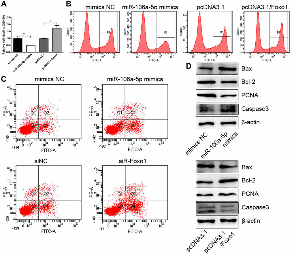miR-106a-5p overexpression and Foxo1 knockdown inhibited proliferation and promoted apoptosis in VSMCs