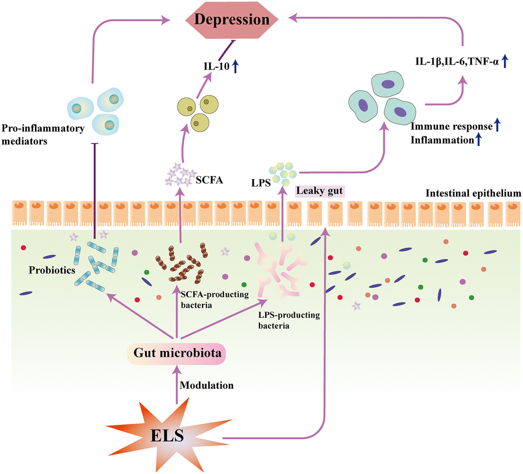 As stated in the introduction, we now appreciate that imbalanced stress and inflammatory responses induced by early life stress are undoubtedly involved in the development and maintenance of depression, but recent evidence suggests that the gut microbiota, too, may play a role in the imbalance of these pathways and neuropsychology. The role of the microbiota in disease is only now emerging, particularly in the field of neuropsychology. Further studies may focus on the cross-talk between the microbiota and neuroendocrine or immune system under early life stress and related intervention therapy.