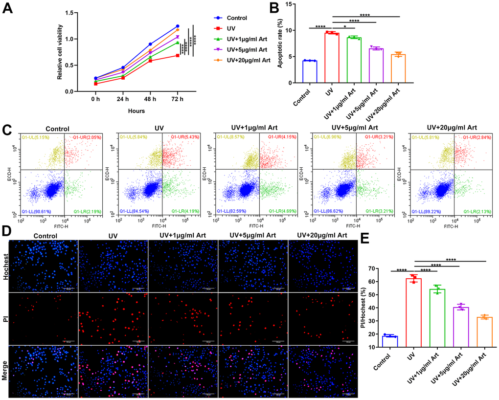Art treatment enhances cell viability and suppresses apoptosis in UV-irradiated HaCaT cells