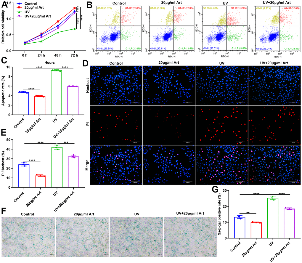 Art treatment ameliorates UV irradiation-mediated cell senescence and has no toxic side effects on normal cells