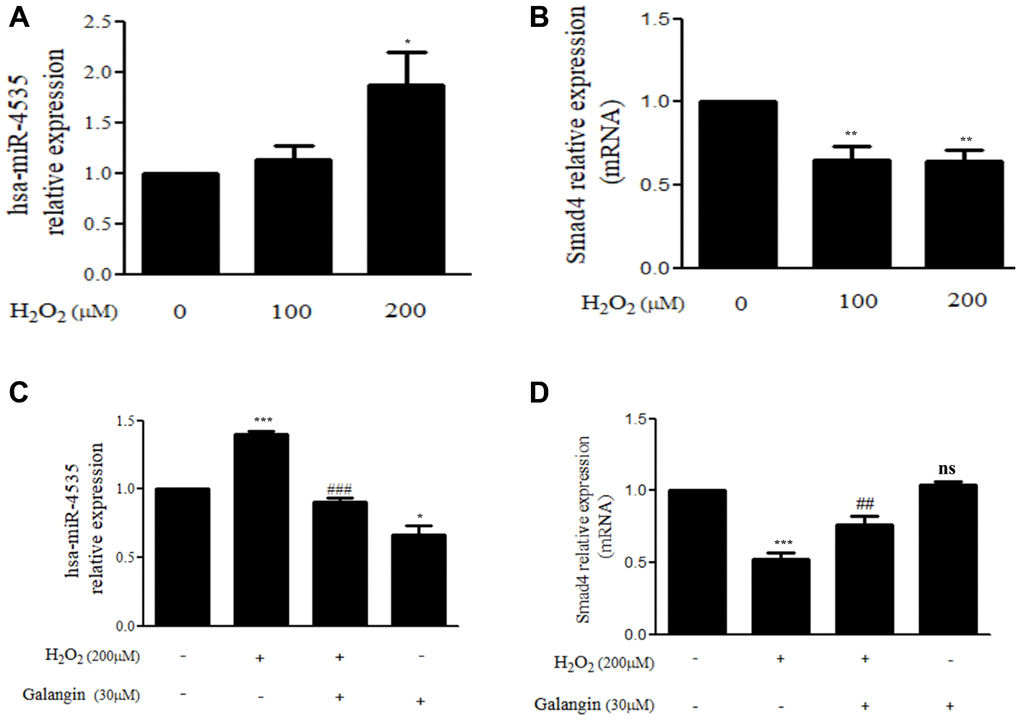 Galangin treatment reduces the H2O2-induced upregulated expression of hsa-miR-4535, predicted to target Smad4
