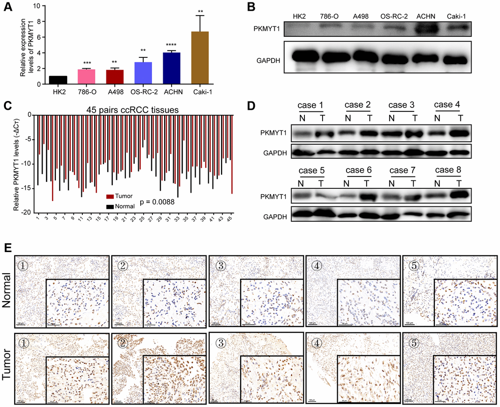 High expression of PKMYT1 in ccRCC cells and tumor tissues