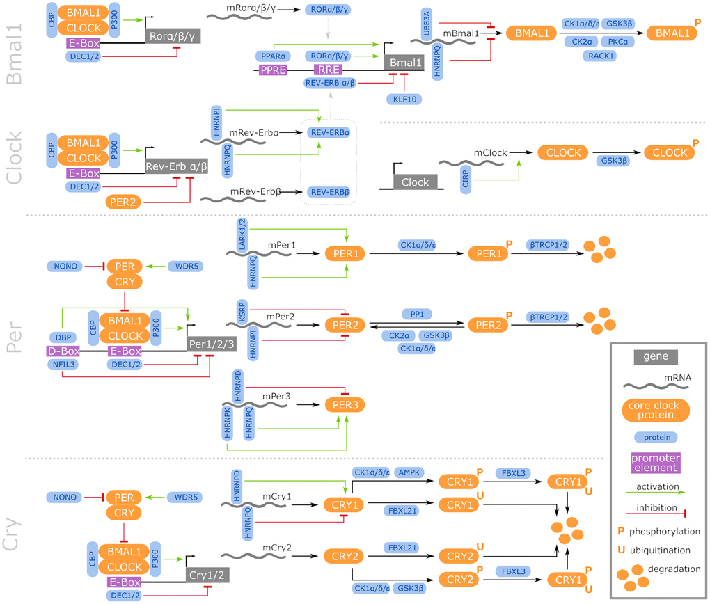 - 84. Lehmann R, Childs L, Thomas P, Abreu M, Fuhr L, Herzel H, Leser U, Relógio A. Assembly of a comprehensive regulatory network for the mammalian circadian clock: a bioinformatics approach. PLoS One. 2015; 10:e0126283. https://doi.org/10.1371/journal.pone.0126283 [PubMed]