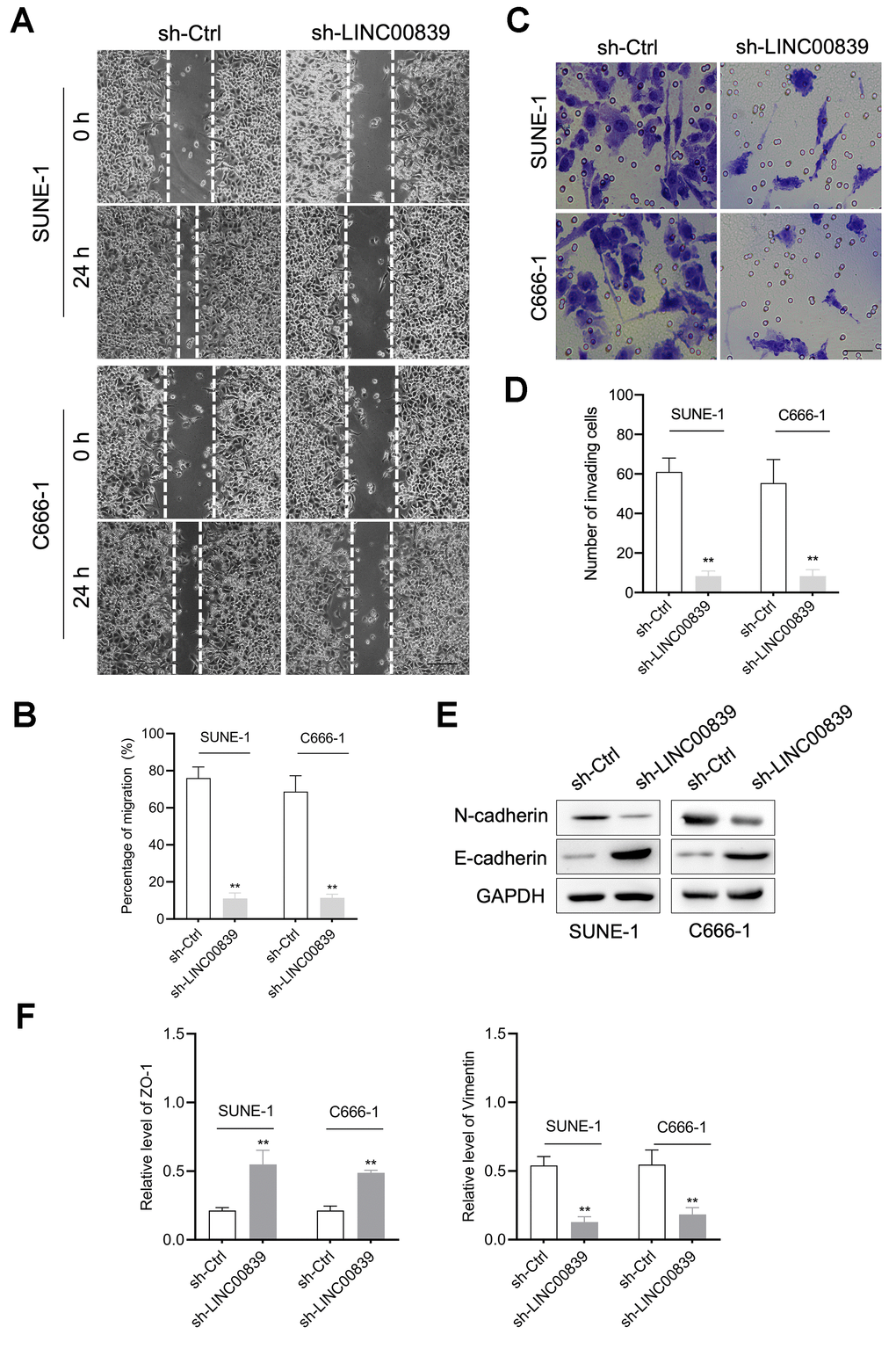 Knockdown of LINC00839 inhibits NPC cell EMT in vitro