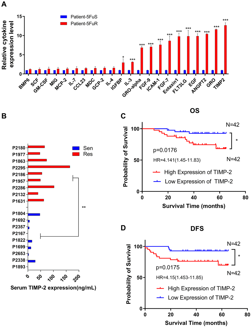 TIMP-2 levels were upregulated in 5-Fu resistant CRC cells and in PDX models