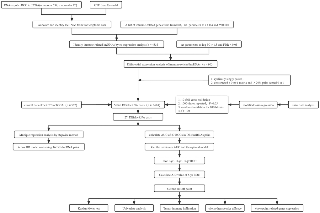 - 14. Sun Z, Jing C, Xiao C, Li T. Long Non-Coding RNA Profile Study Identifies an Immune-Related lncRNA Prognostic Signature for Kidney Renal Clear Cell Carcinoma. Front Oncol. 2020; 10:1430. https://doi.org/10.3389/fonc.2020.01430 [PubMed]