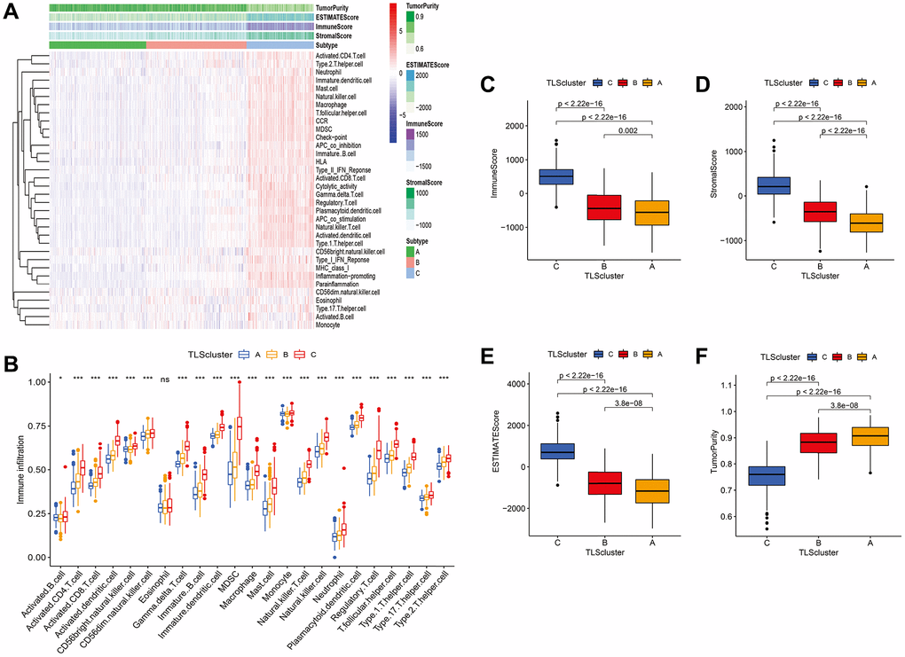 Calculation of immune cell infiltration for different TLS subtypes