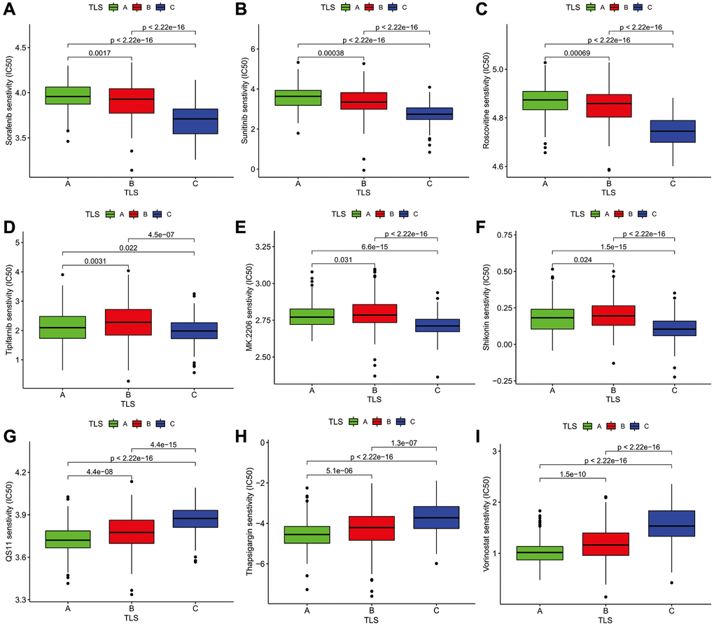 Association analysis of TLS subtype and drug sensitivity