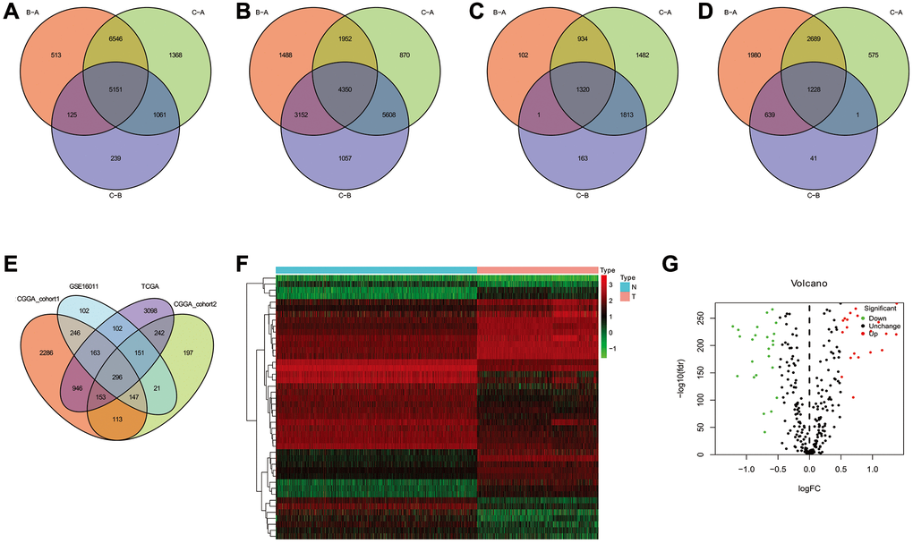 Differentially expressed genes (DEGs) were identified by comparing three TLS subtypes, and intersection genes were identified using the R package “Venn”. The intersection genes from TCGA, CGGA_cohort1, CGGA_cohort2, and GSE16011 were then analyzed again using the R package “Venn”. The TCGA database and GTEx were used to evaluate the expression of the intersection genes in tumor and normal tissues. Genes with a false discovery rate (FDR) <0.05 and a log2 fold change (FC) >1 were defined as genes with differential expression [32]. The TCGA database was used to select genes related to prognosis. Prognosis-related genes with differential expression were used to calculate riskscores via LASSO regression in the training cohort of TCGA. Riskscore were then calculated in the testing cohorts including CGGA_cohort1, CGGA_cohort2, and GSE16011 [36]. The prognostic role of the riskscore of glioma patients was assessed in the training and testing cohorts by univariate and multivariate Cox proportional hazards regression analyses.