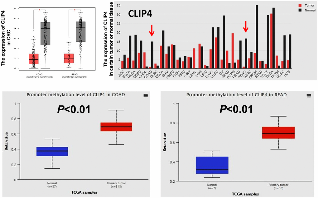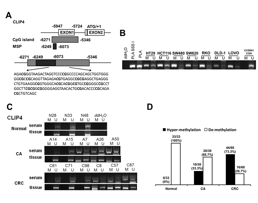 Hyper-methylated CLIP4 was identified in CRC and CA serum