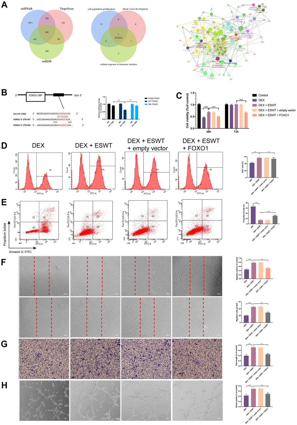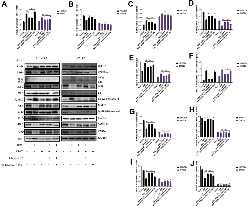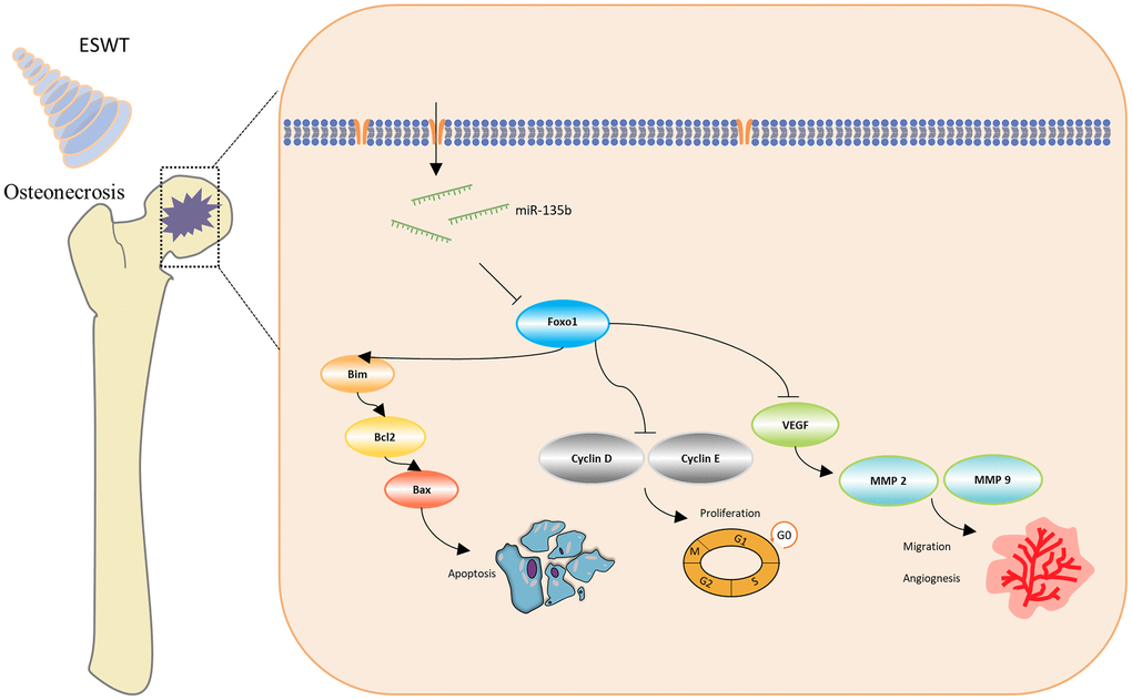 Role of ESWT and miR-135b in the regulation of the FOXO1-Bim pathway and expression