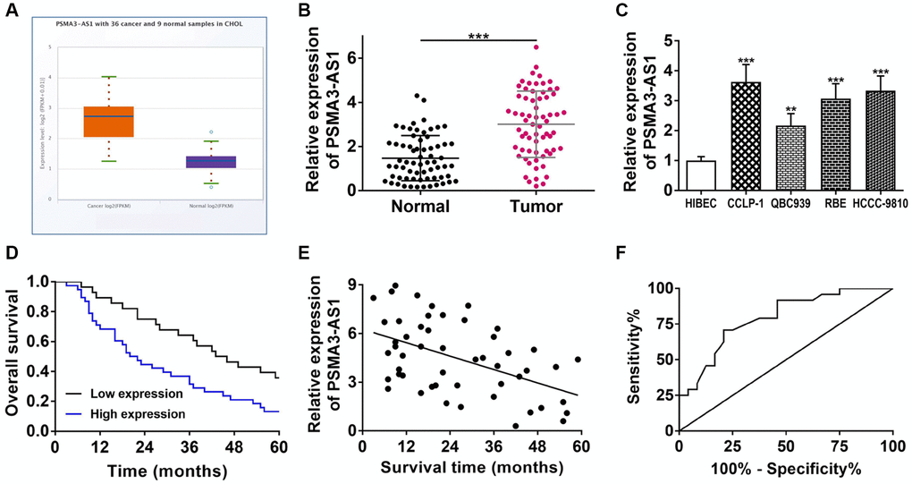 PSMA3-AS1 expression in CCA and the association with survival