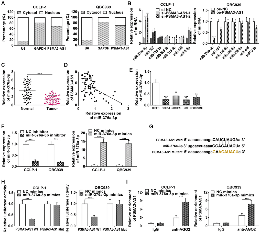 PSMA3-AS1 adsorbed and repressed miR-376a-3p in CCA