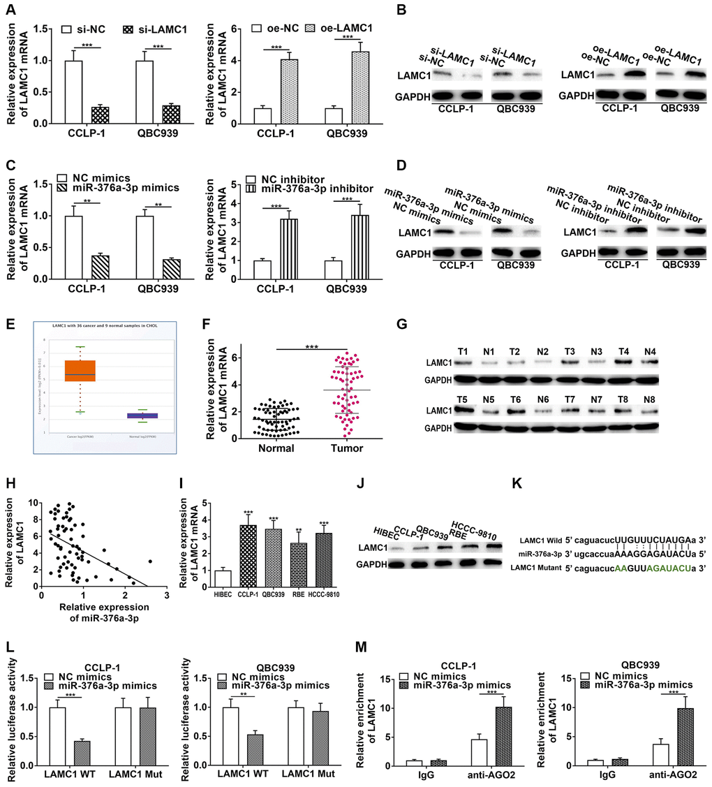 miR-376a-3p targeted LAMC1 in CCA