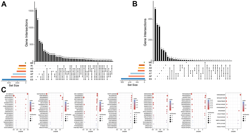 For the comprehensive and unified comparison of different AS events, a formalized annotation was devised, consisting of the parent gene involved, the ID number of the AS event, and the splicing type (e.g., “SF1|16681|AA”). AS events include the seven different AS modes (AA, AD, AP, AT, ES, RI, and ME).
