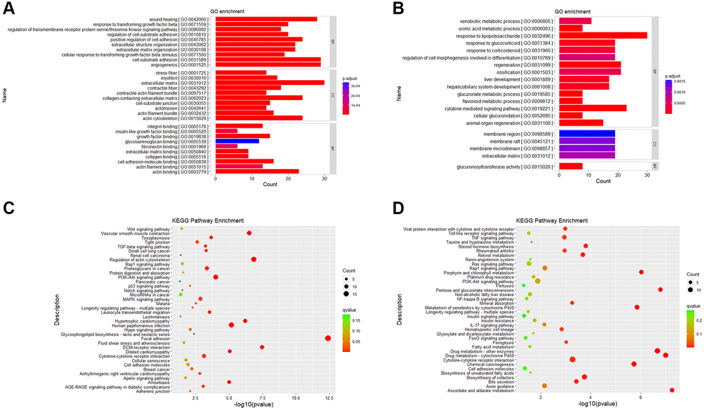 KEGG enrichment analysis focuses on gene pathway analysis. From the results of pathway enrichment, we found that 279 up-regulated genes enriched in 170 KEGG pathways (Supplementary Table 3) and 311 down-regulated genes enriched in 240 KEGG pathways (Supplementary Table 4). It was enriched in 38 significantly up-regulated pathways (Figure 5C) and 38 down-regulated pathways (Figure 5D).