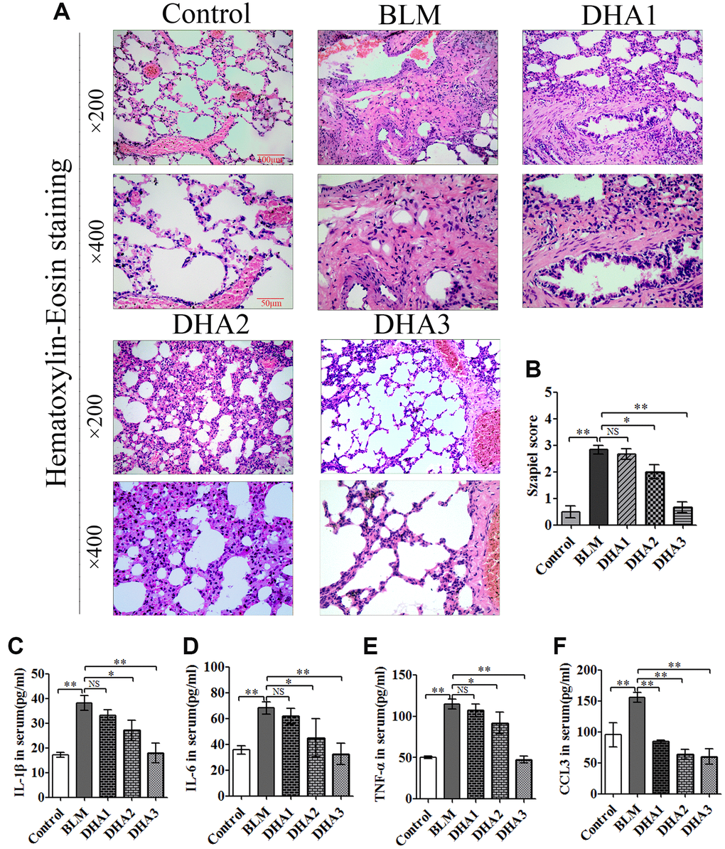DHA inhibits the inflammatory response in the lungs and serum of BLM-exposed rats