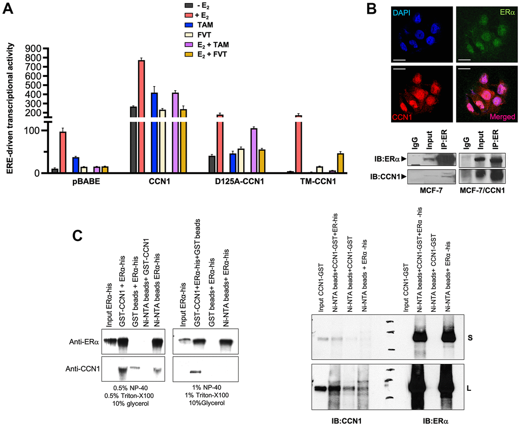 CCN1 directly interacts with the estrogen receptor
