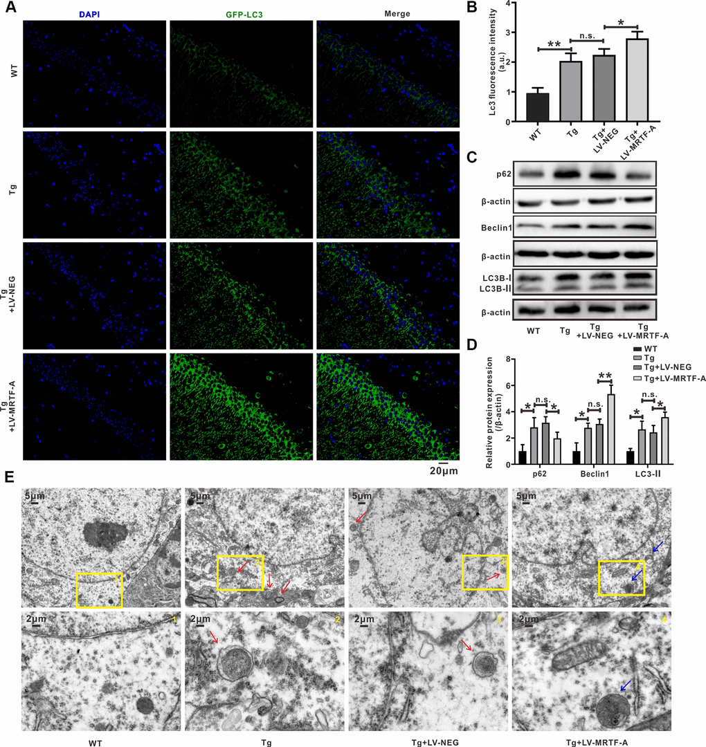 Overexpression of MRTF-A rescued Aβ-induced autophagy deficit in Tg2576 mice