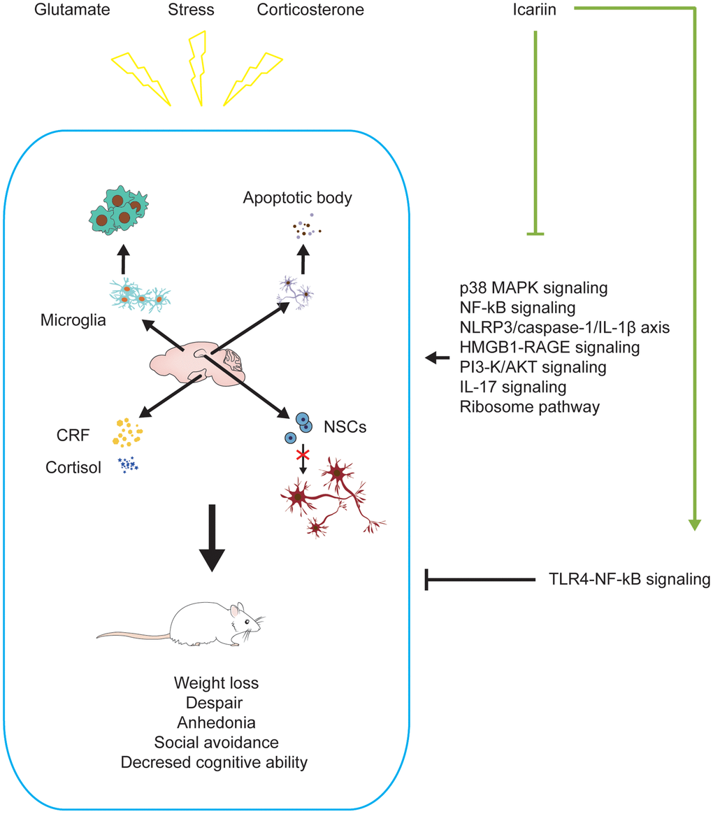 - 174. Liu L, Zhao Z, Lu L, Liu J, Sun J, Dong J. Icariin and icaritin ameliorated hippocampus neuroinflammation via mediating HMGB1 expression in social defeat model in mice. Int Immunopharmacol. 2019; 75:105799. https://doi.org/10.1016/j.intimp.2019.105799 [PubMed]