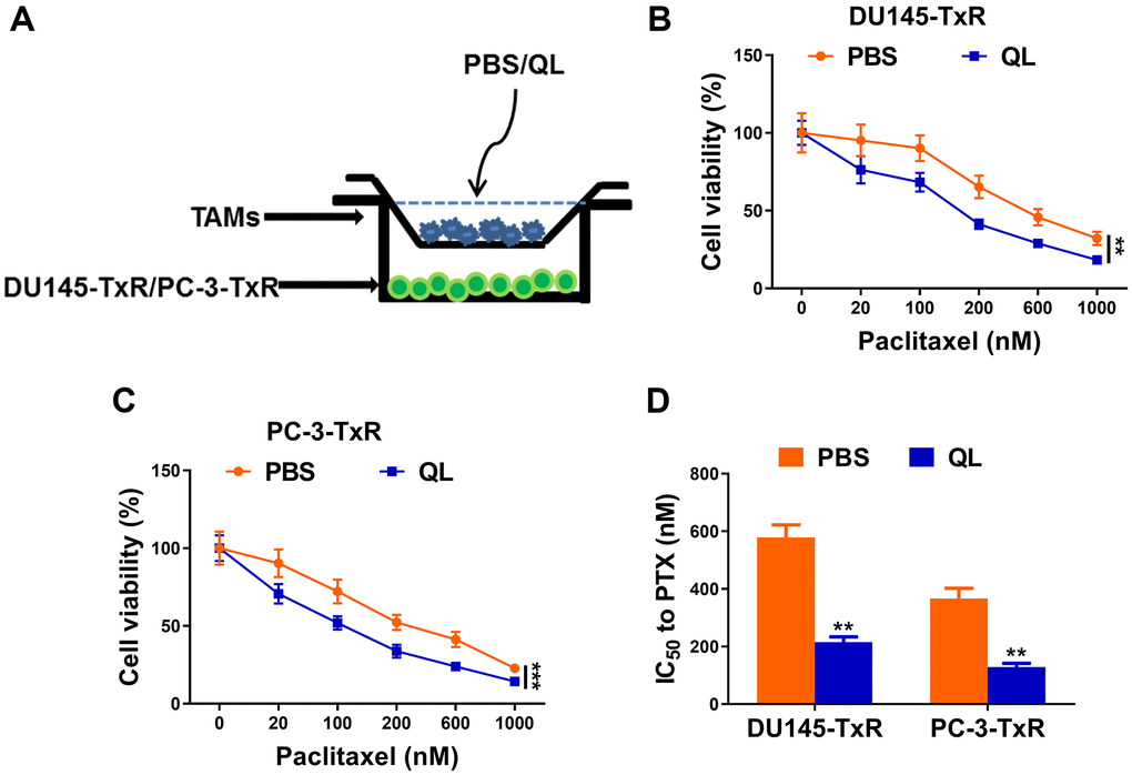 TAMs treated with QL serum decreased paclitaxel resistance in prostate cancer cells
