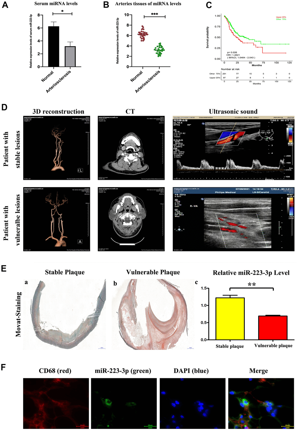 Enhanced MiR-223-3p levels in carotid arteries and serum from patients with AS and co-localization with macrophages in vulnerable atherosclerotic lesion