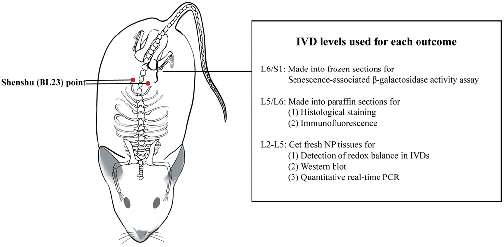 However, whether MT can inhibit the onset of age-related IVD degeneration via antioxidation remains unknown. The objective of this study is therefore to explore whether MT can be a useful intervention on the aging of lumbar IVDs by regulating oxidative stress and to determine the role that the SIRT1/FOXO1 pathway plays in the intervention.