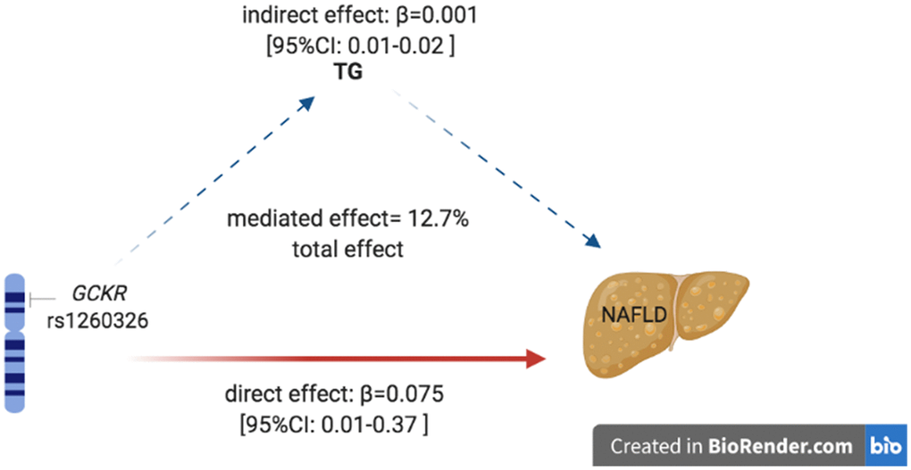 Mediated effect of TG on the association of rs1260326 and NAFLD