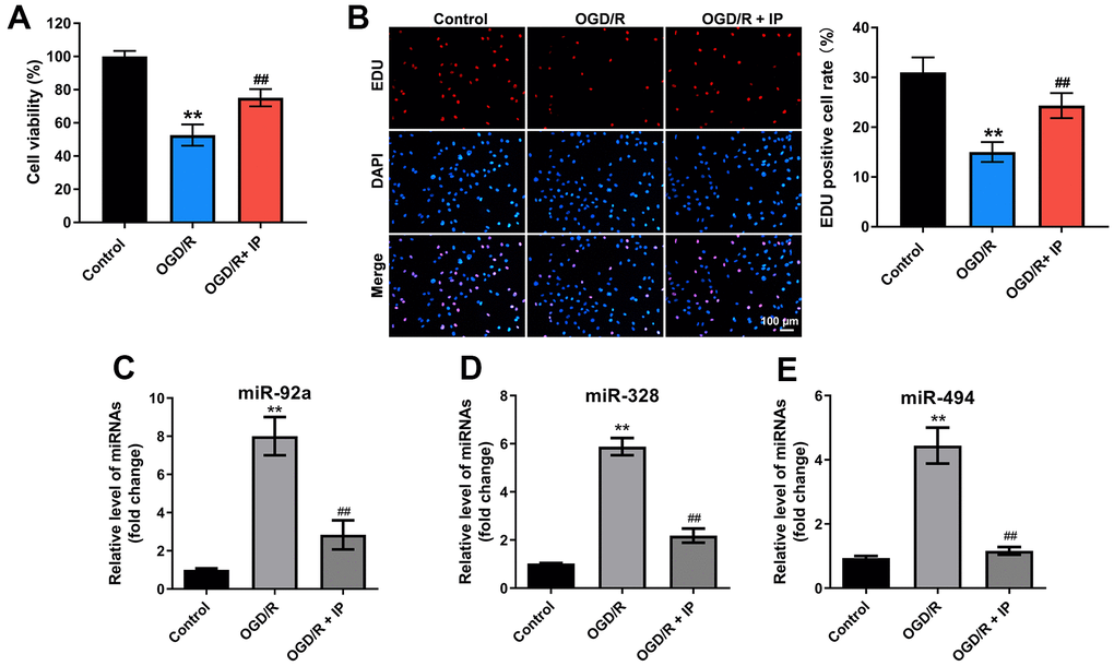 IP protected human umbilical vein endothelial cells (HUVECs) against OGD/R via downregulating miR-92a, miR-328 and miR-494