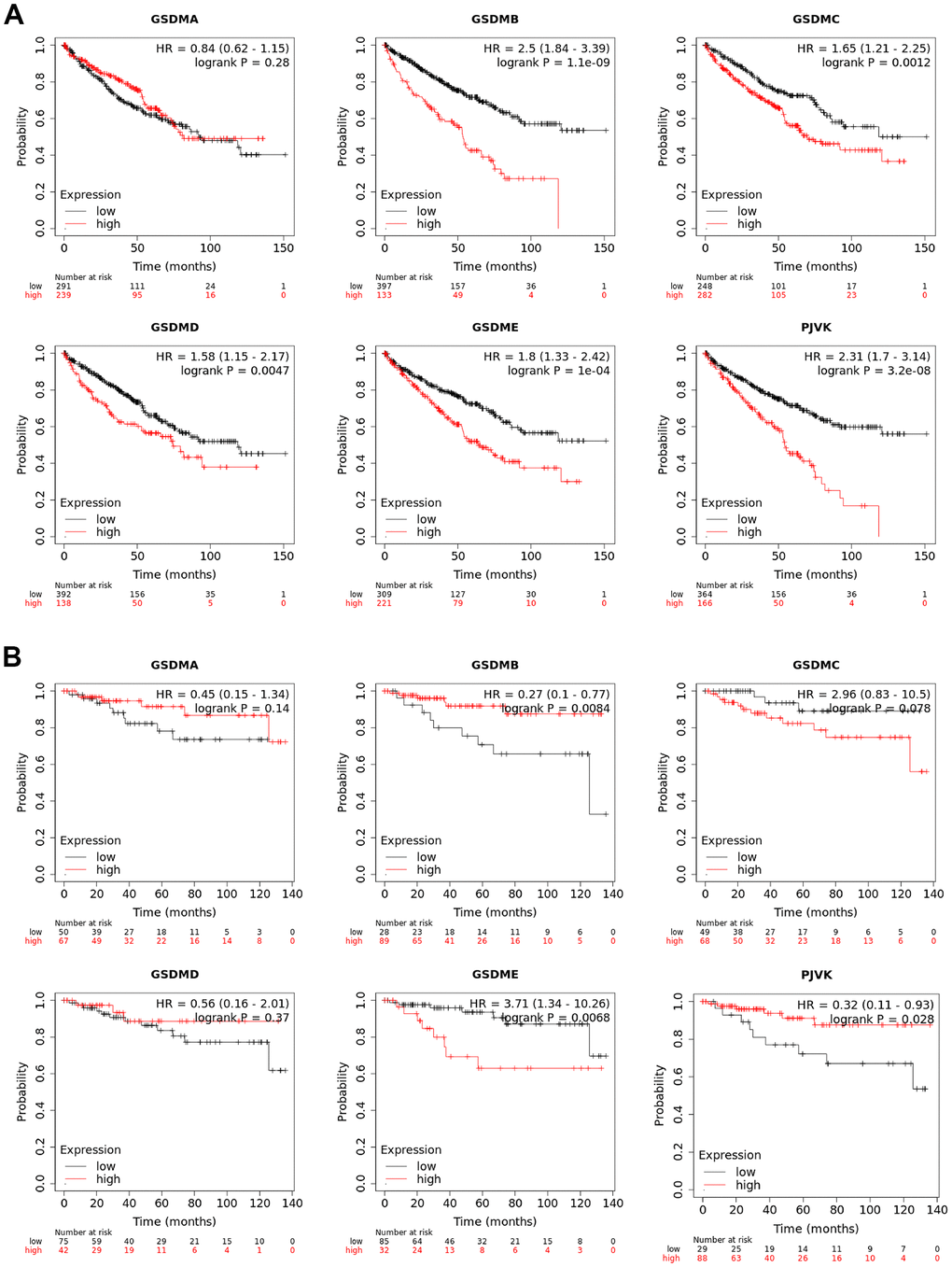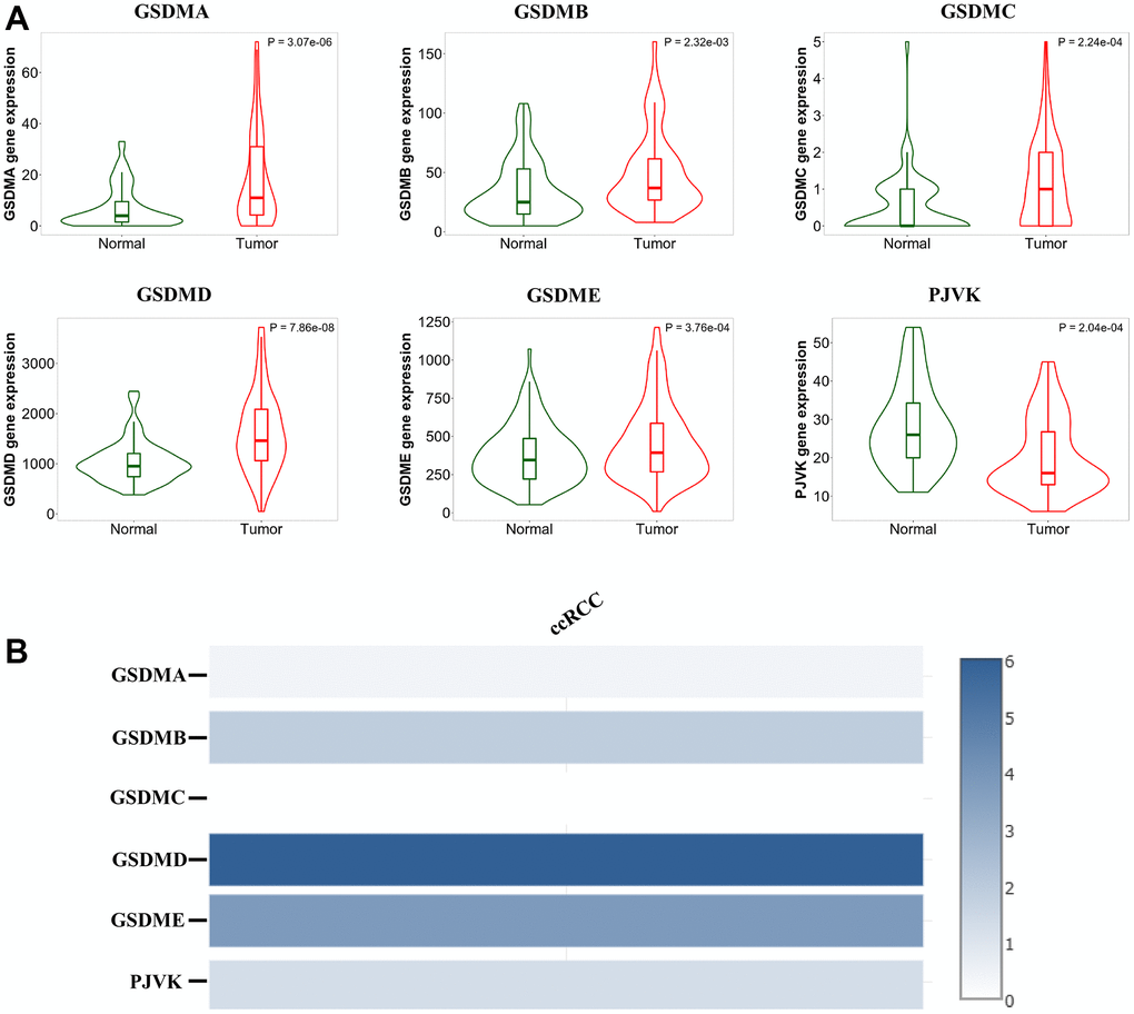 Previous studies have demonstrated that, as a key regulator, the GSDM family directly or indirectly affects the development of various tumors like breast cancer [15], gastric cancer [16] and ovarian cancer [17]. Although, the effect of the GSDM family on ccRCC and its mechanism have not been elucidated in detail. Second-generation of sequencing technology and many open source databases provide favorable conditions for us to analyze the GSDM family in an all-round way, which will also help to clarify the role of GSDMs in the development and prognosis of ccRCC.