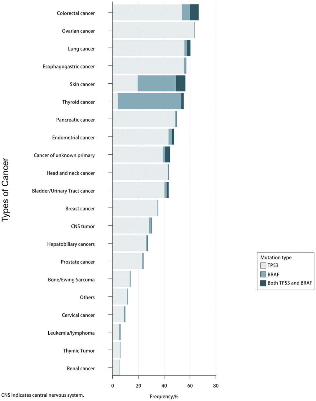 TP53/BRAF mutation model has high frequency