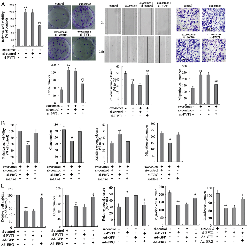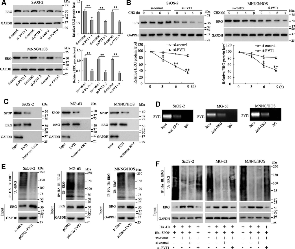 This article has been corrected: The authors requested replacement of Figures 2 and 4, where they found errors in panels 2D and 4A. The image of the "MG-63" group in Figure 2D was wrongly obtained from the "MNNG/HOS" group and has been replaced with the correct image from the initial set of experiments. While combining images from the colony formation assays for panel 4A, the colony formation image for the “control” group was mixed up with the "exosomes + si-PVT1" group and has now replaced with a “control” group image from the original set of experiments. These corrections do not change the content of the publication and do not affect the conclusion drawn from this research. The authors would like to apologize for any inconvenience caused.