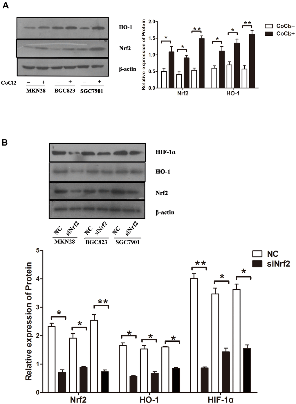 Nrf2 and HO-1 are upregulated in GC cells under hypoxic conditions