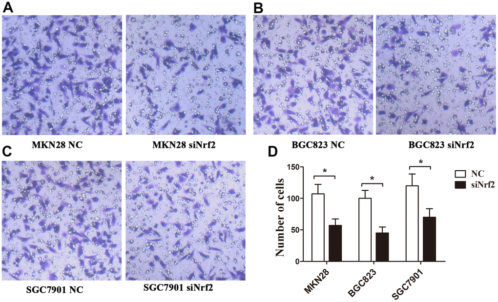 Silencing the expression of Nrf2 inhibits the invasion of GC cells under hypoxic conditions