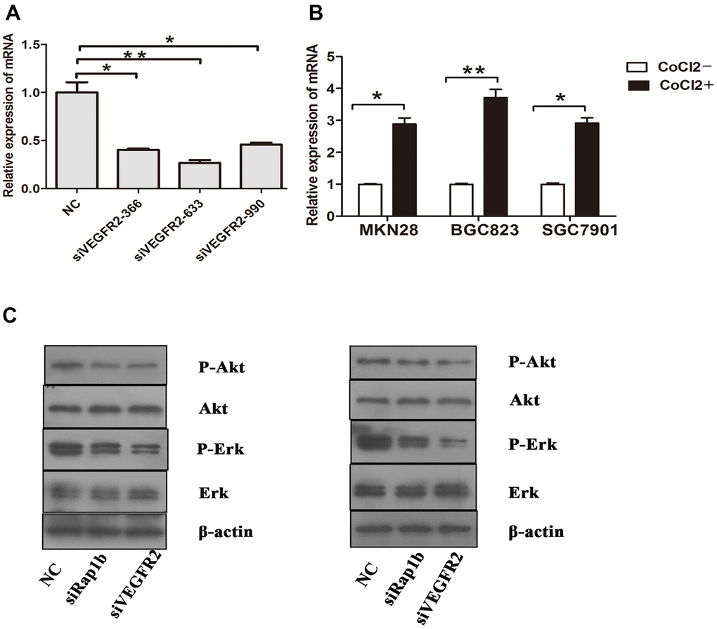 In conclusion, our findings highlight the expression profile of Rap1b and Nrf2 in malignant behavior and poor prognosis. Hypoxic conditions promoted the aggressive behavior of GC cells through the up-regulation of Rap1b and Nrf2. Hypoxic/VEGF-A-Rap1b/VEGFR2 pathway facilitated the nuclear translocation of Nrf2. Targeting Rap1b and Nrf2 expression may be promising prognostic biomarkers, as well as novel therapeutic strategies in GC.